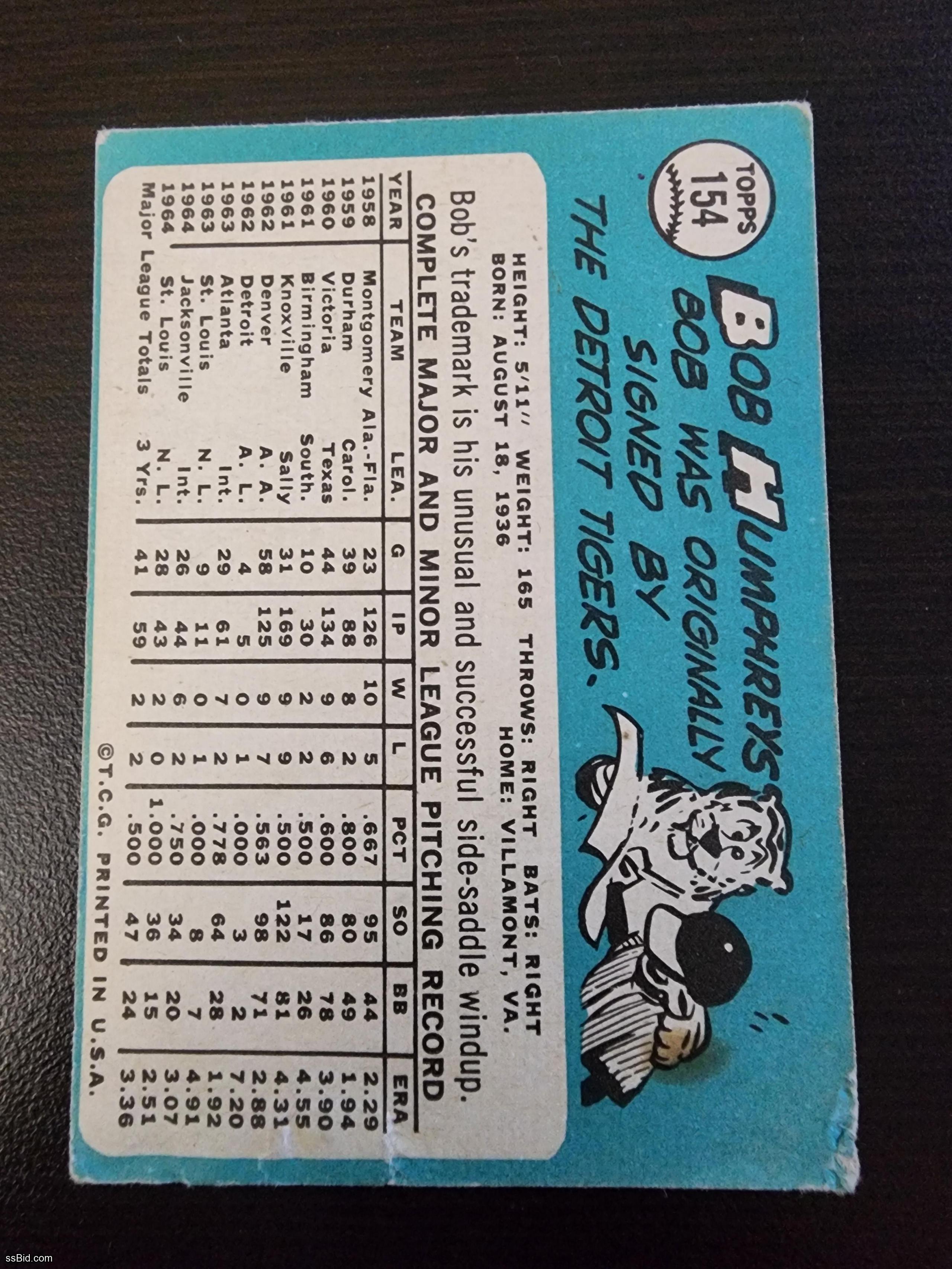 1965 Topps #154 Bob Humphreys RC/Rookie Cardinals
